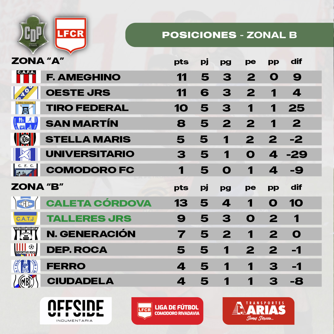 Por otro lado, Oeste Juniors ganó por 3 a 2 ante Comodoro Fútbol Club, partido disputado en Caleta Córdova, el equipo de Valle C jugó su último partido en este Zonal, ya que tendrá libre en la próxima y última fecha.