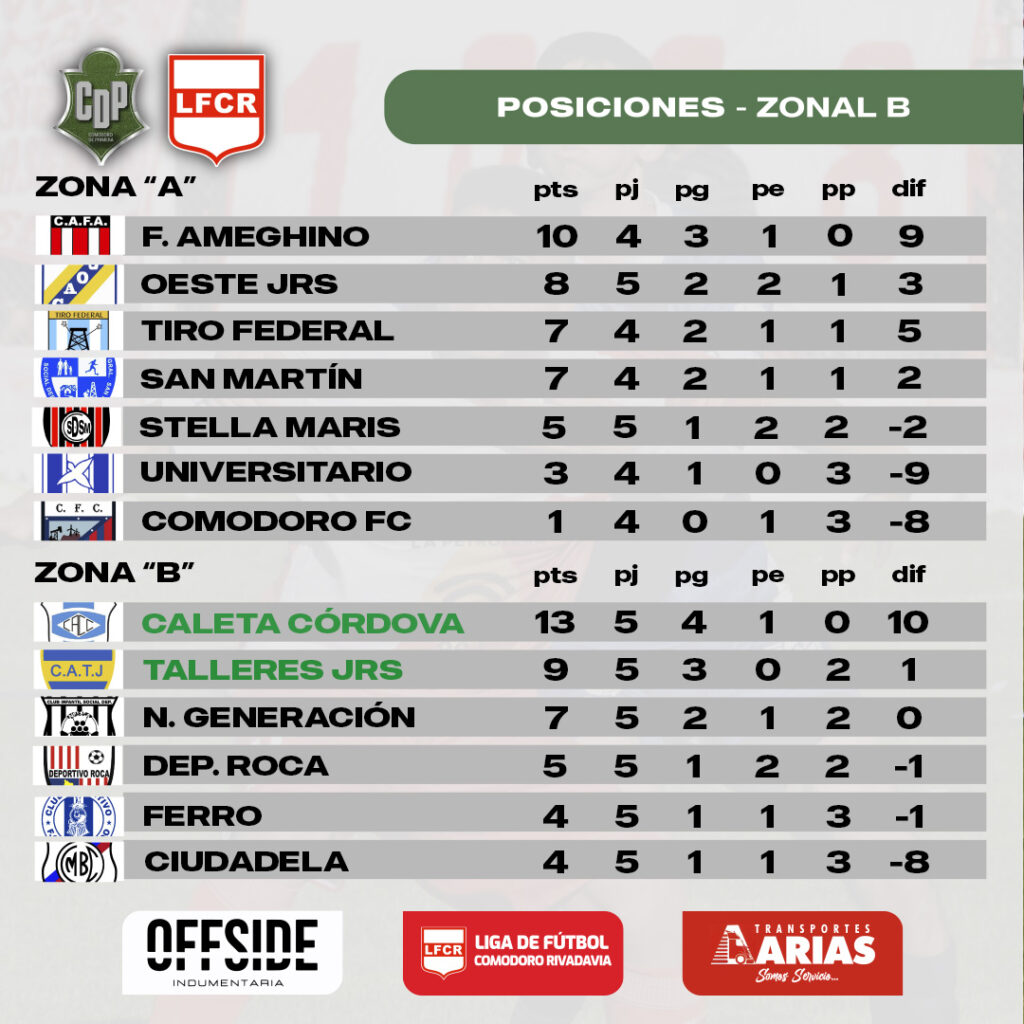 Finalizó la quinta fecha del Torneo Zonal «B», la última para la Zona «B» donde ya se definieron a los dos equipos clasificados a las semifinales: Caleta Córdova y Talleres Juniors.