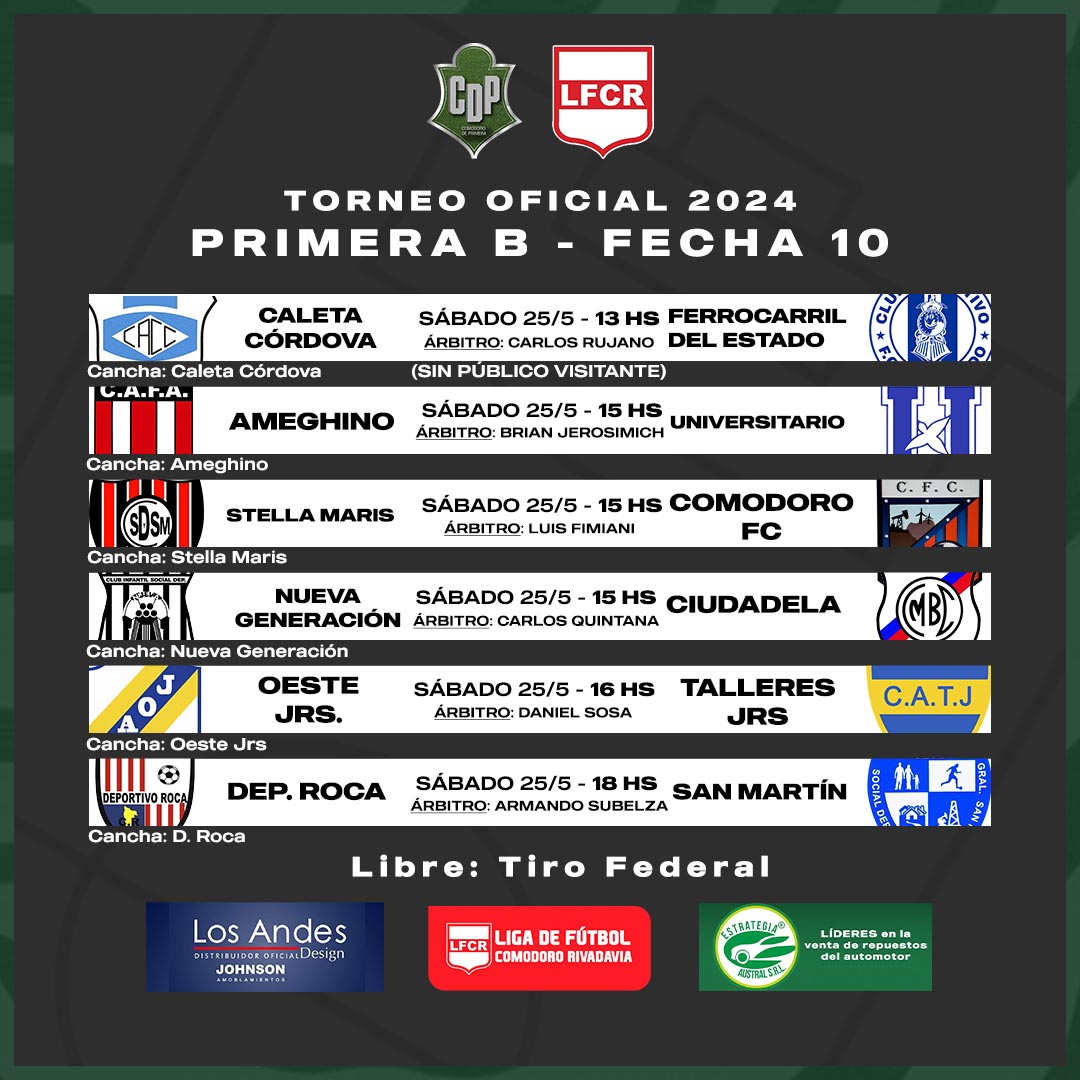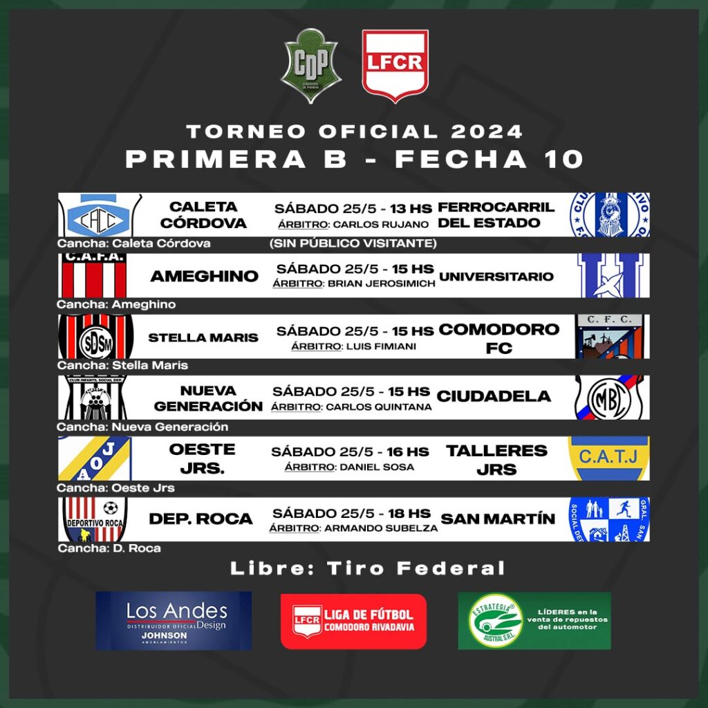 La Liga de Fútbol ya determinó cómo se jugará la décima fecha del torneo de Primera «B» para este fin de semana, con toda la programación centrada en la jornada sabatina.