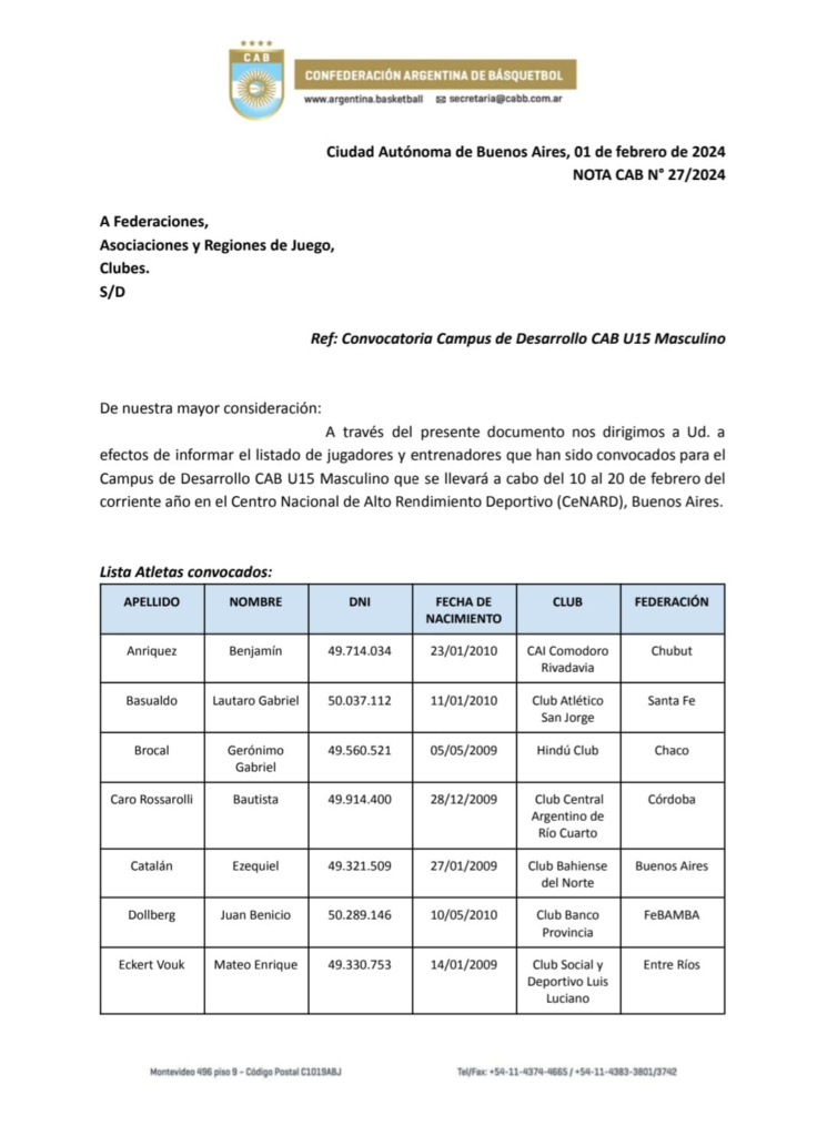 Se trata de del jugador de la @caisemilleropatagonico, Benjamín Anriquez, de 14 años, que fue convocado por la #CAB – Confederación Argentina de Básquetbol al Campus de Desarrollo U15 que se llevará a cabo del 10 al 20 de febrero en el Centro Nacional de Alto Rendimiento Deportivo (CeNARD).