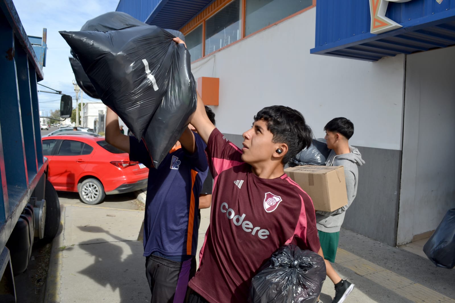 Este lunes se cargaron los camiones que llevarán a Bahía Blanca las donaciones conseguidas en la campaña solidaria realizada por clubes de Comodoro y Rada Tilly. La CAI, Gimnasia y Esgrima, Petroquímica, Federación Deportiva y Náutico de Rada Tilly fueron las sedes donde se podía acercar a colaborar. Muchas personas mostraron su solidaridad y se acercaron a ayudar.