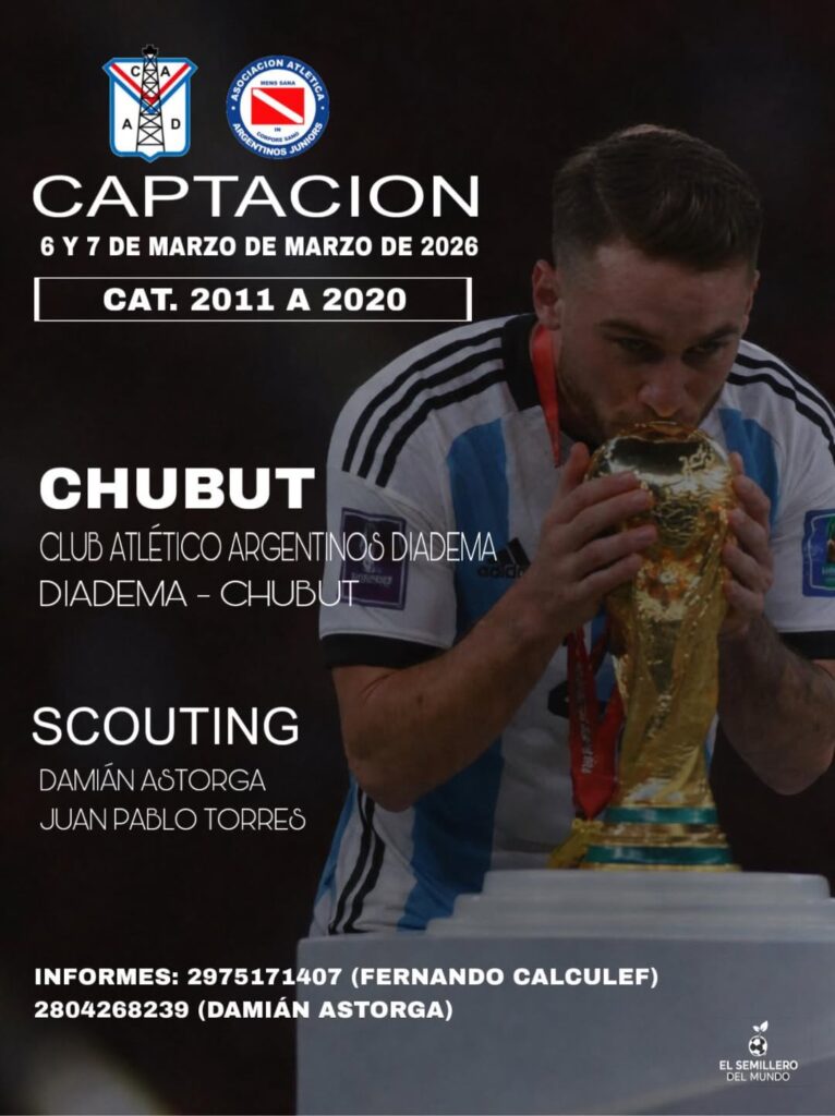 La Asociación Atlética Argentinos Juniors estará realizando prueba de jugadores en nuestra ciudad. Los captadores Damián Astorga y Juan Pablo Torres estarán a cargo de las jornadas de captación que se llevarán a cabo en Diadema.