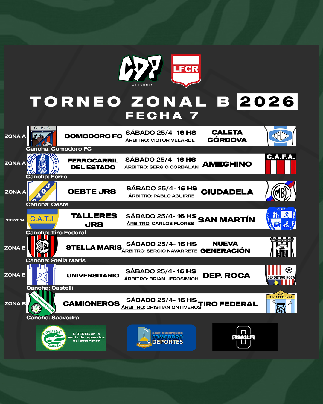 El ascenso comodorense continuará con la acción del Apertura Zonal este sábado por la tarde. Desde las 16 horas se jugarán los siete partidos de la fecha 7, con interesantes cruces.