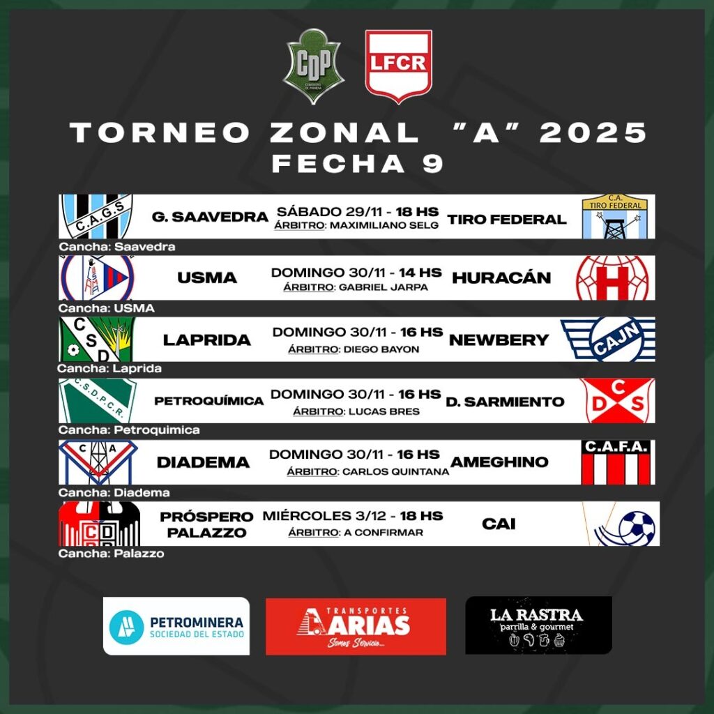 La fecha 9 del Torneo Zonal A se desarrollará en los próximos días, con la final del certamen a la vuelta de la esquina. En esta nueva fecha, seis partidos se jugarán entre el sábado, domingo y miércoles.