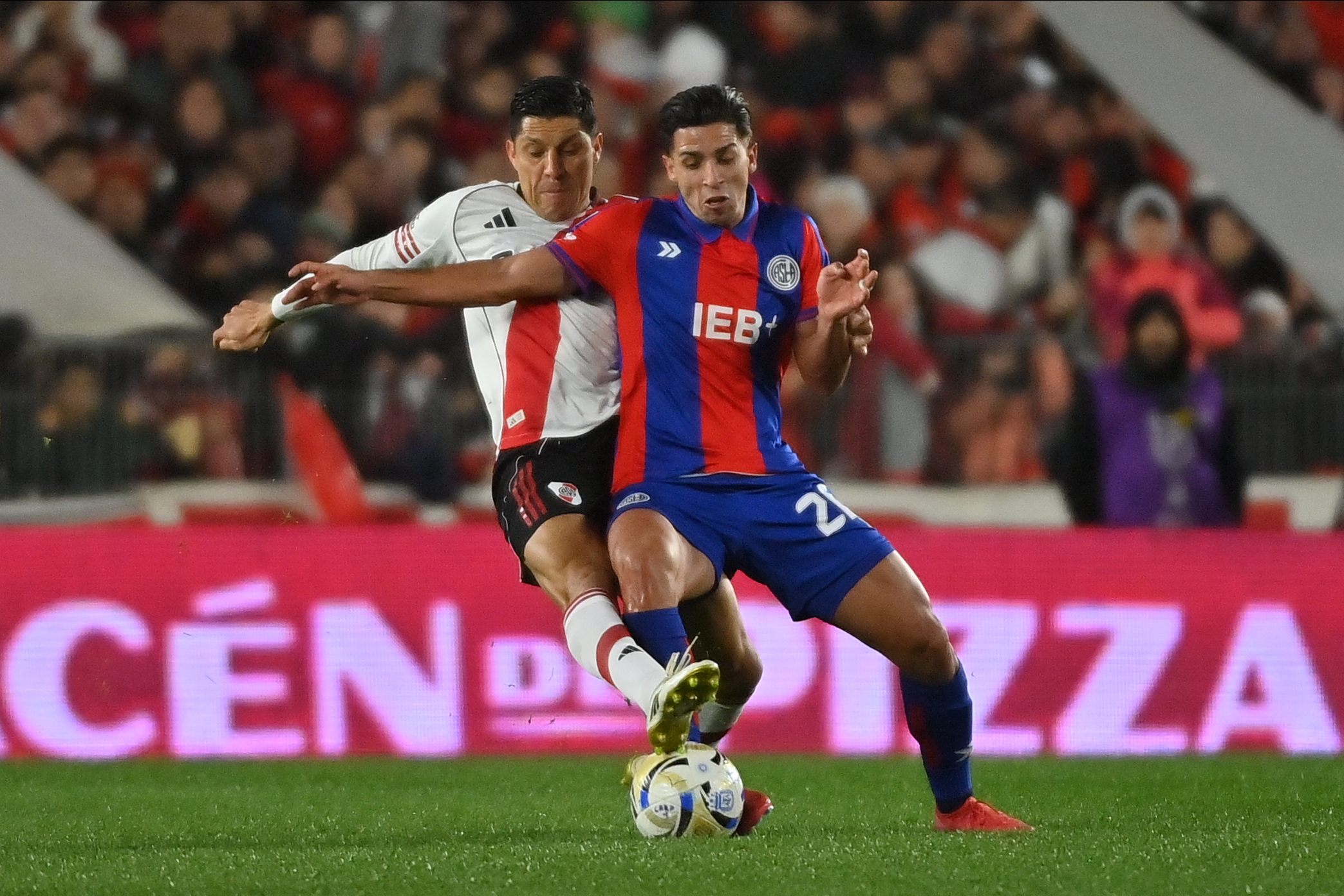 El equipo de Gallardo no fue el mismo de los partidos anteriores. Impreciso con la pelota y poco claro en ataque, casi no generó situaciones, salvo un cabezazo de Montiel en un córner, que fue bien retenido por el arquero Gill. El Cuervo no se replegó, jugó de igual a igual, pero sin exigir a Armani.