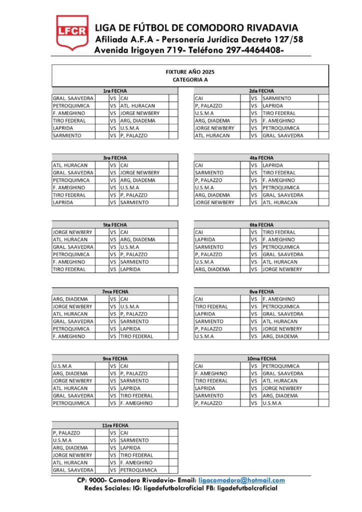 Comienza oficialmente la temporada 2025 en lo que respecta el fútbol comodorense en la ciudad petrolera, ya se confirmaron las 22 fechas que jugarán en la «A» y las 26 jornadas que tendrá el ascenso.