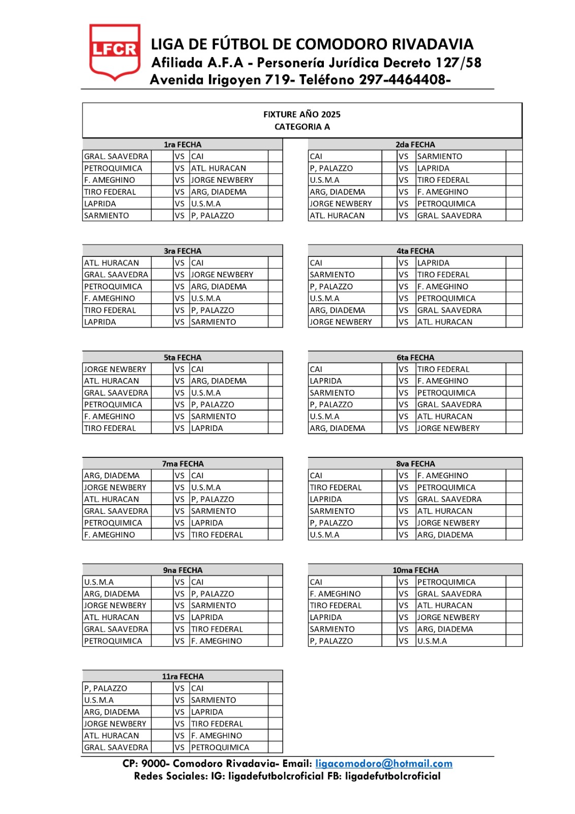 CATEGORÍA «A» – 22 FECHAS