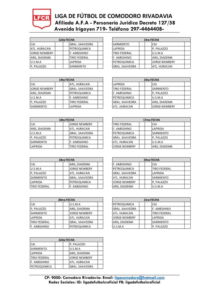 Compartimos a continuación el fixture completo de ambas categorías: