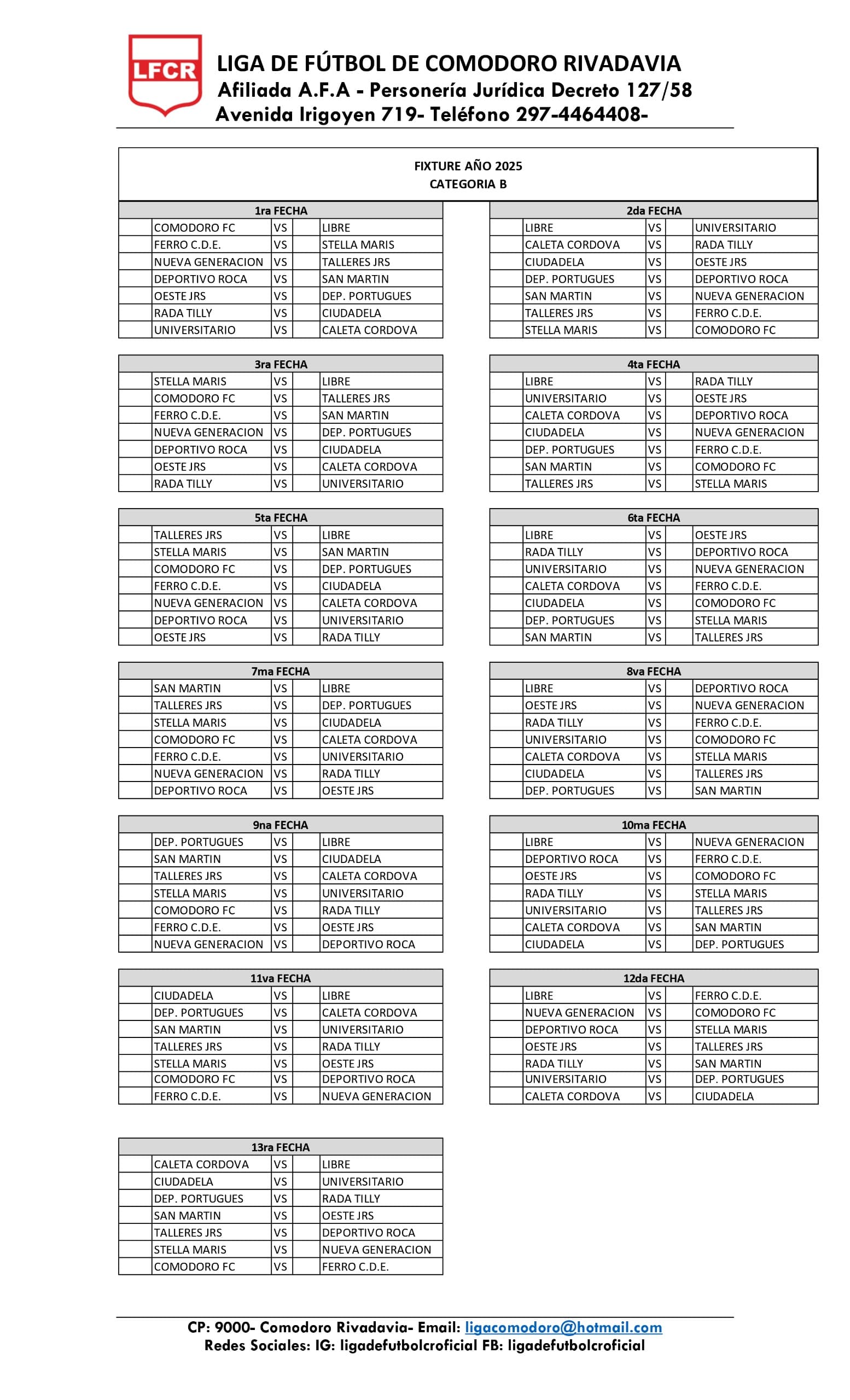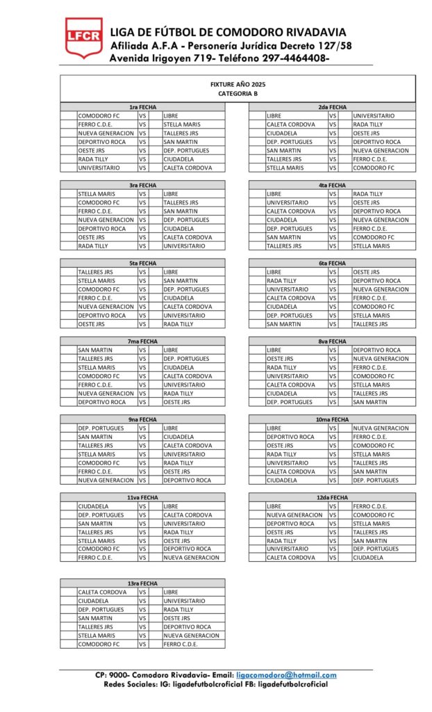 CATEGORÍA «B» – 26 FECHAS