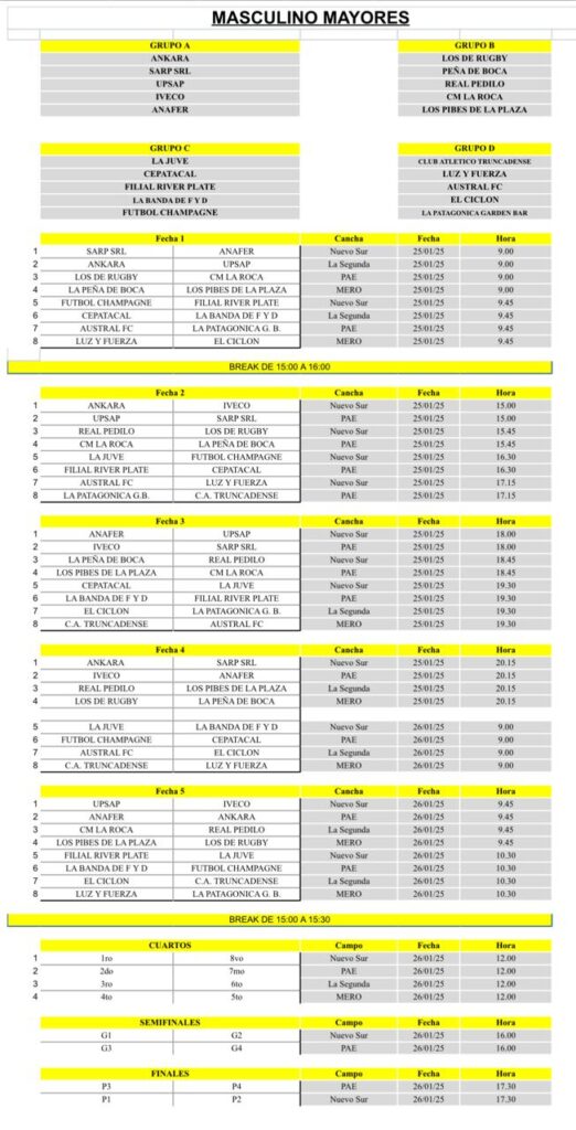 En la categoría mayores serán 20 equipos divididos en zonas de 4 equipos, mientras que en femenino serán dos zonas de 4 y 3 equipos. Y finalmente en menores, cat. 2013 será zona única de 6 equipos, cat. 2014 serán dos zonas de 5 y 4 equipos, cat. 2015 zona única de 7 equipos y las categorías 2016 y 2017 están unificadas en dos zonas de 6 y 5 equipos.