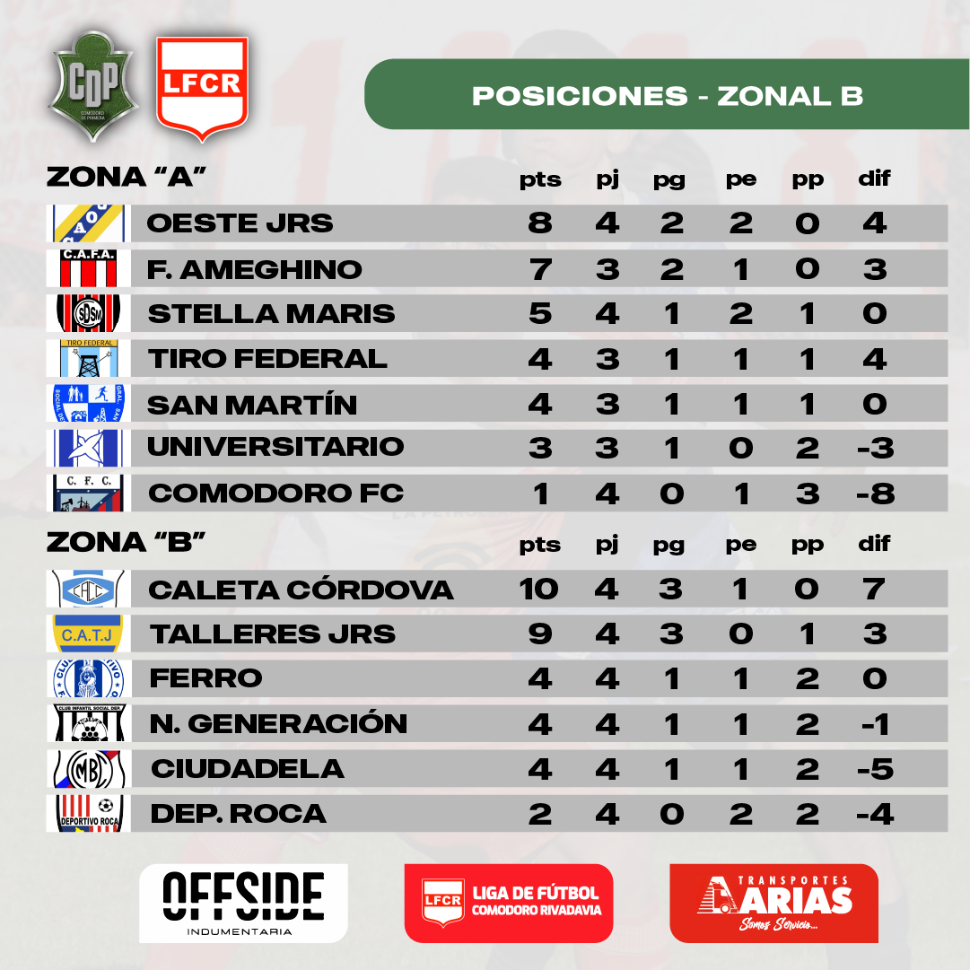 Con esta igualdad el equipo de Valle «C» se mantiene en la punta de la zona “A” con 8 puntos, seguido por Ameghino con un punto menos.