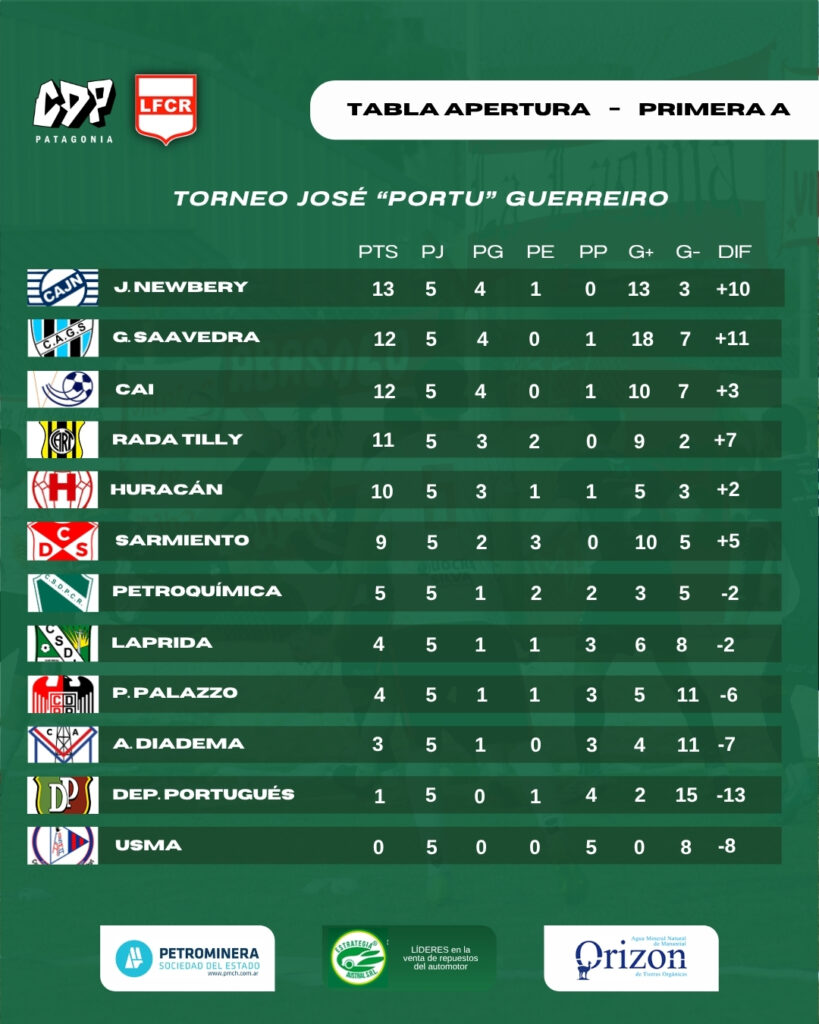 En el Far West, Laprida derrotó a Deportivo Portugués por 4-1. Dobletes de José Loncón y Thiago Rearte le dieron el primer triunfo al Verde, mientras que Leandro Velázquez descontó para el Lusitano.