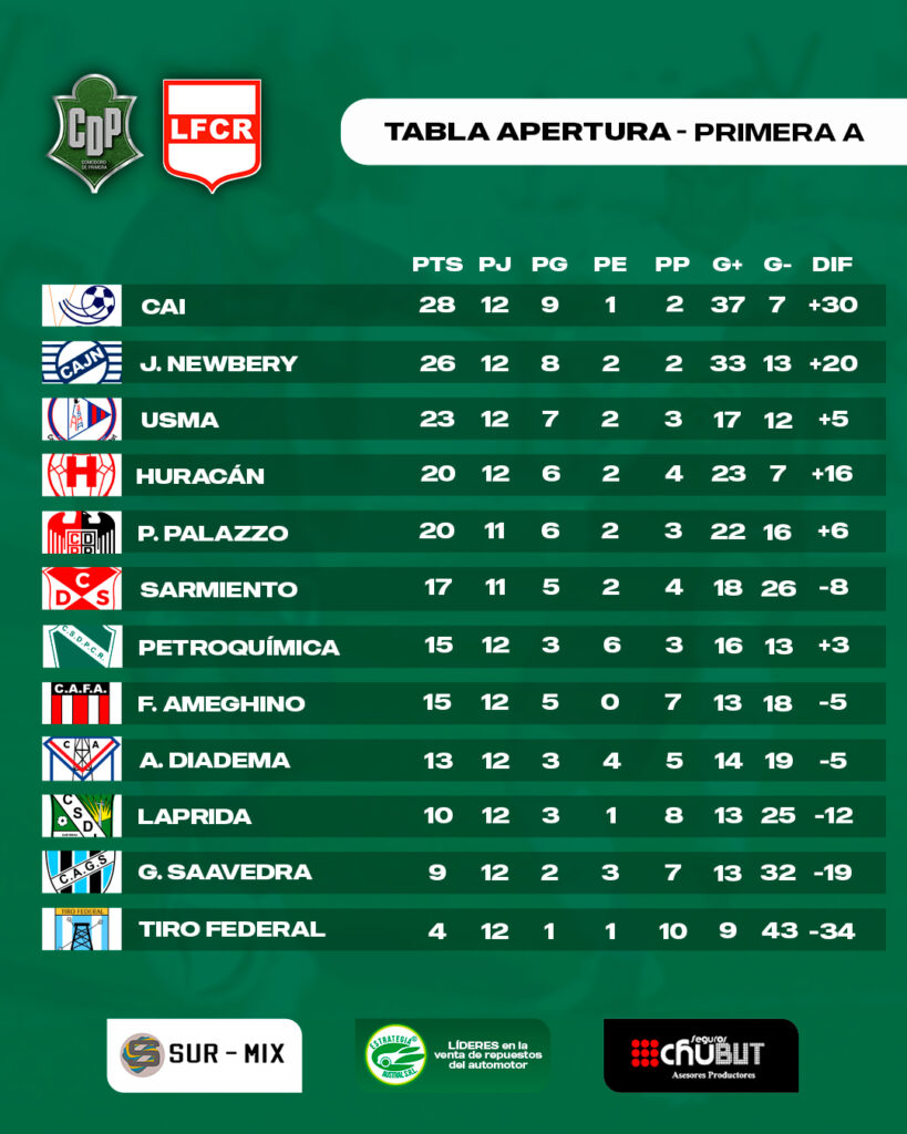La Comisión de Actividades Infantiles volvió a la victoria al derrotar 5-0 a Saavedra. Goles de José Chacón, Lucas Palma, Facundo Vilte y dos de Bayron Ortiz cortaron la racha de tres sin ganar para el Azzurro. Con esta victoria, la CAI recupera la cima del Apertura, que había perdido con el triunfo de Newbery el sábado. El partido se jugó en cancha de Tiro Federal. Fue el debut de Juan Pablo Díaz en el banco del Parque.