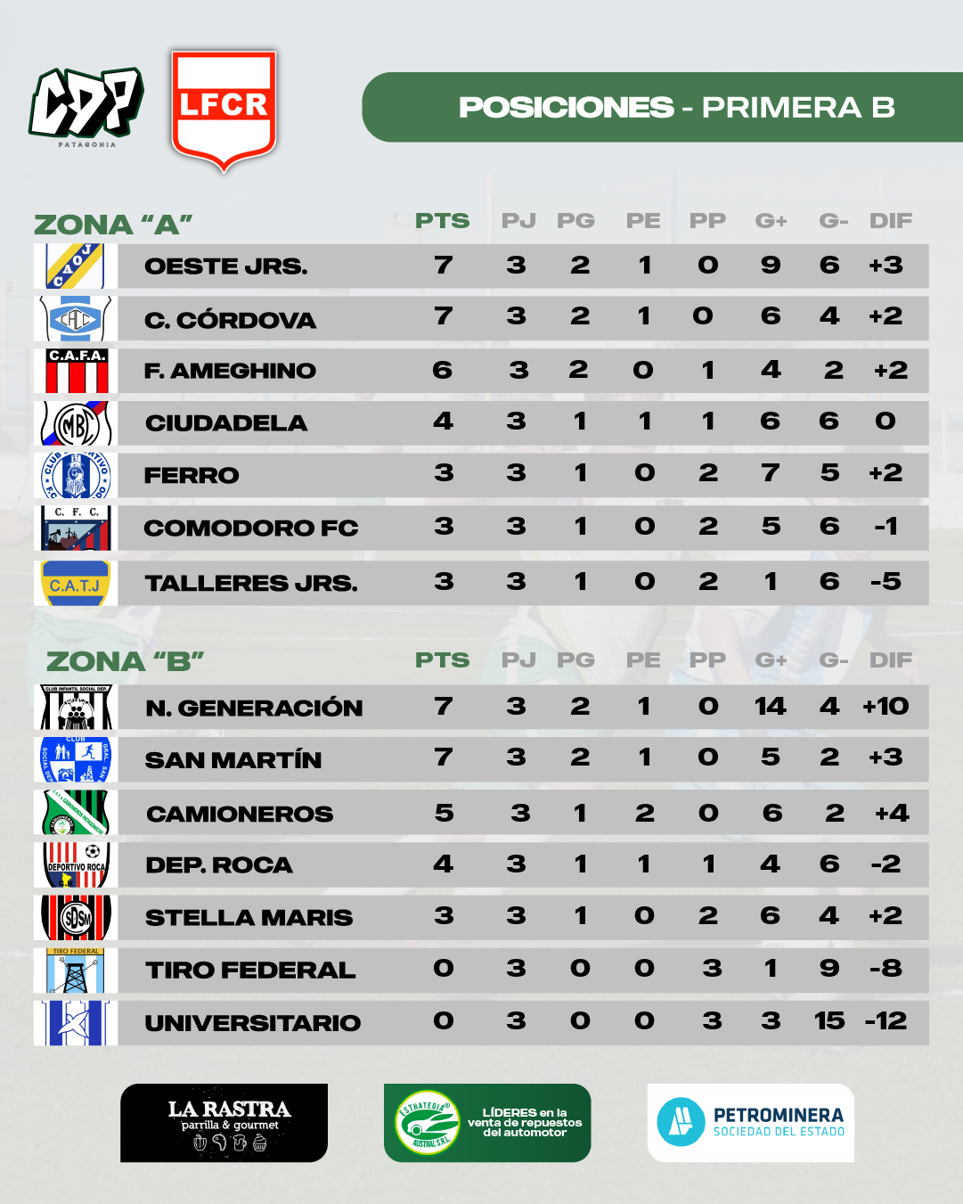 A la espera de la nueva fecha del ascenso comodorense, así están las posiciones de cada zona: