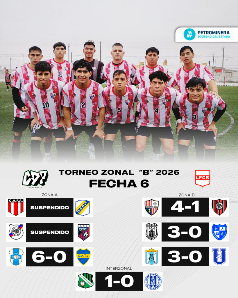 El ascenso comodorense disputo cinco partidos correspondientes a la fecha 6 del Apertura esta tarde. En una jornada con triunfos únicamente locales, dos partidos se postergaron por las condiciones climáticas.