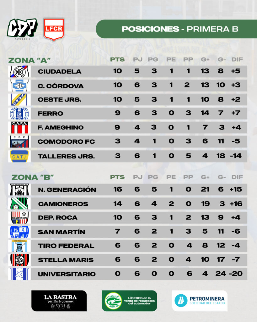 En la tarde del sábado, la fecha 6 del Apertura de Primera B se comenzó a disputar con cinco partidos en simultáneo a las 16 horas. La nueva fecha vio dos partidos suspendidos y un nuevo líder en una de las zonas.
