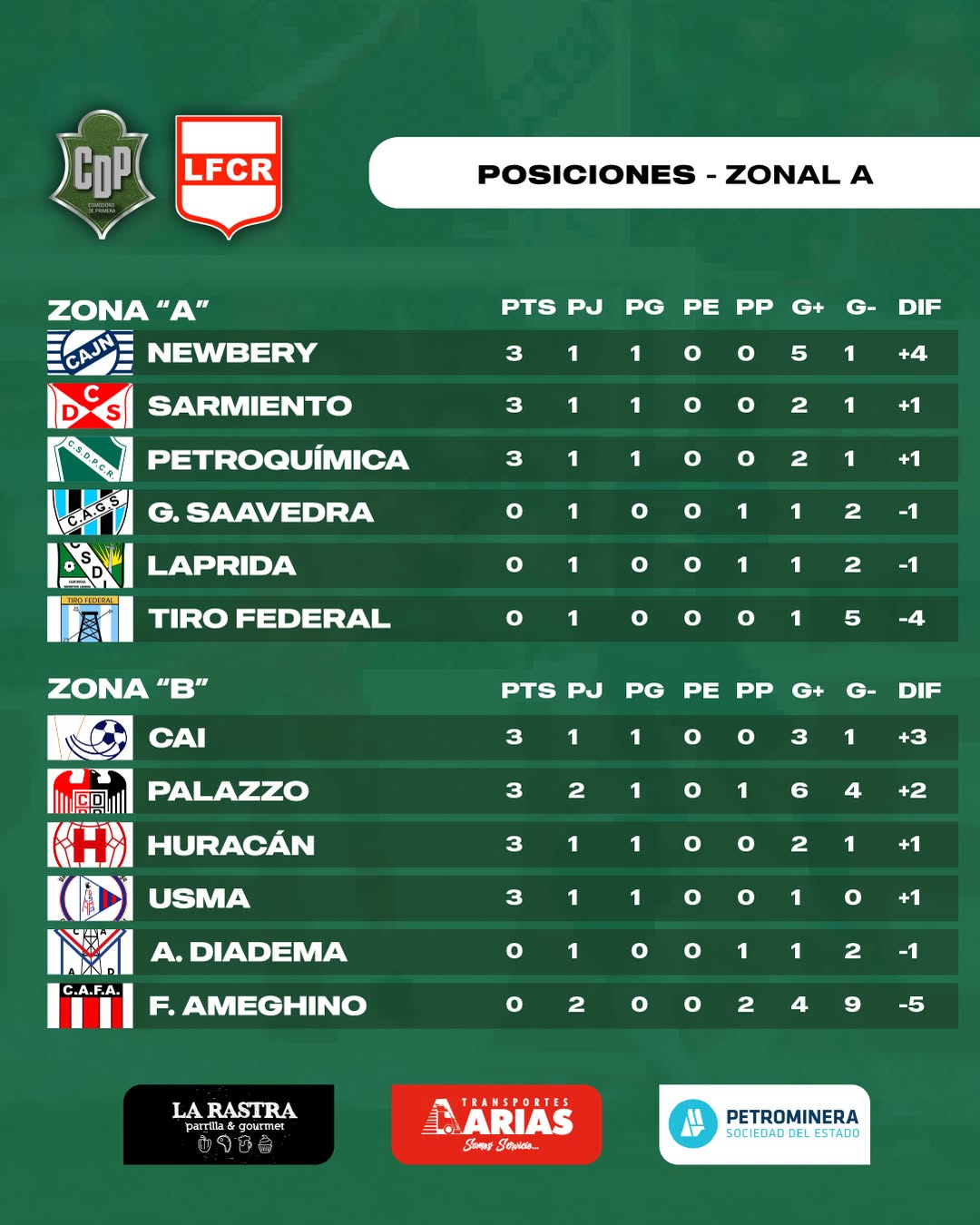 En la tarde nublada del sábado, Florentino Ameghino recibió a Próspero Palazzo en el inicio de la segunda fecha del Zonal de Primera A. Parte de la Zona B, el encuentro se jugó en ‘La Nueva Salitrera’ desde las 16 horas.