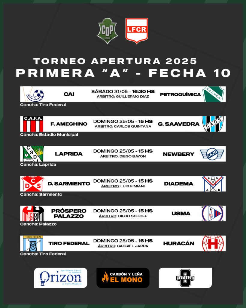 Este fin de semana finalmente se jugará la fecha 10 de la Primera A del fútbol comodorense. Con una intensa lucha por el segundo lugar, se pronostica una fecha de buen fútbol con interesantes partidos.