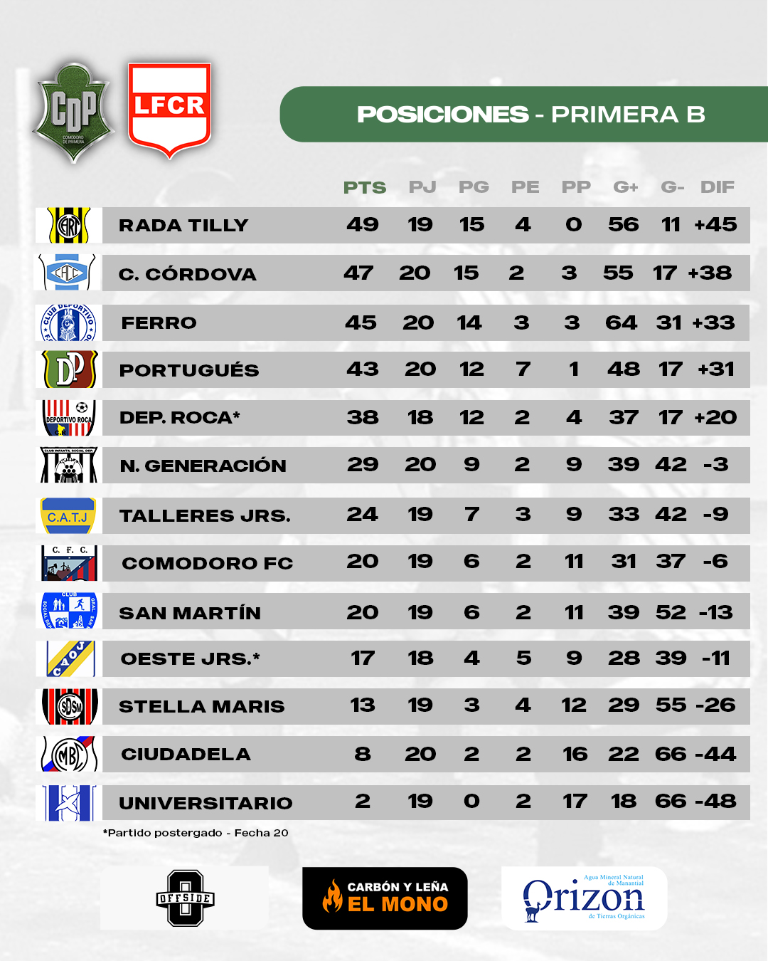 En Rada Tilly, el local recibe a Comodoro FC bajo el arbitraje de Luis Fimiani. El Aurinegro viene de una victoria que lo consolida como el gran candidato al título, y querrá seguir en lo más alto. El Azulgrana viene en un irregular pasar, pasando entre triunfos y derrotas.