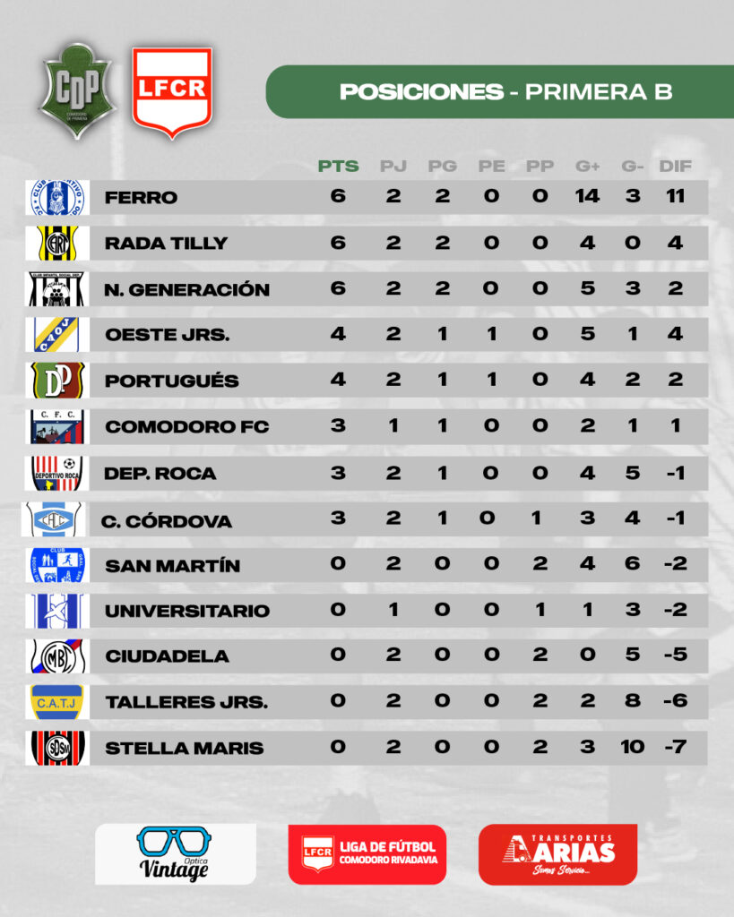 En su visita a el Puerto, Rada Tilly ganó ante Caleta Córdova 3-1 con goles de Federico Leguiza, Joaquín Perón y Brian Cárdenas. Nueva Generación, venció 3-2 a San Martín. Para el local los goles fueron de Thiago Rosales y Guillermo Sanzana, mientras que para ‘La Nueva’ Axel Cid por duplicado y el restante de Martín González. El equipo de Leonel Tula es otro de los punteros junto a Ferro y Rada Tilly.