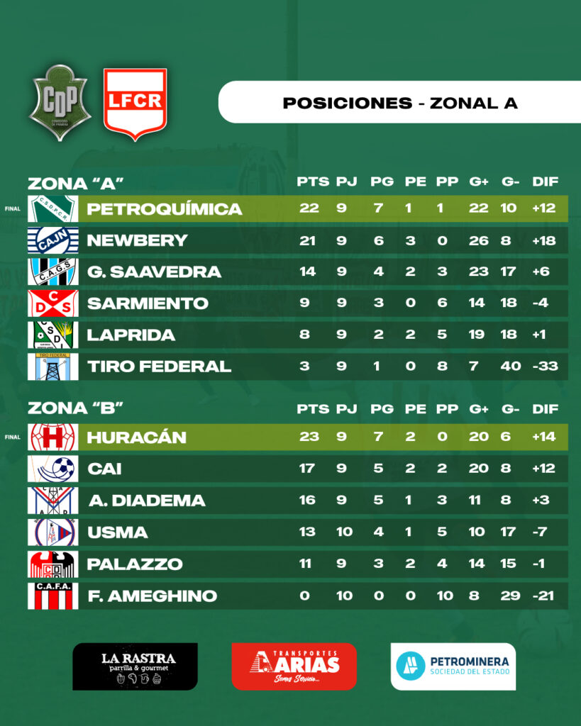 Tras los partidos del miércoles, así quedaron las tablas del Zonal: