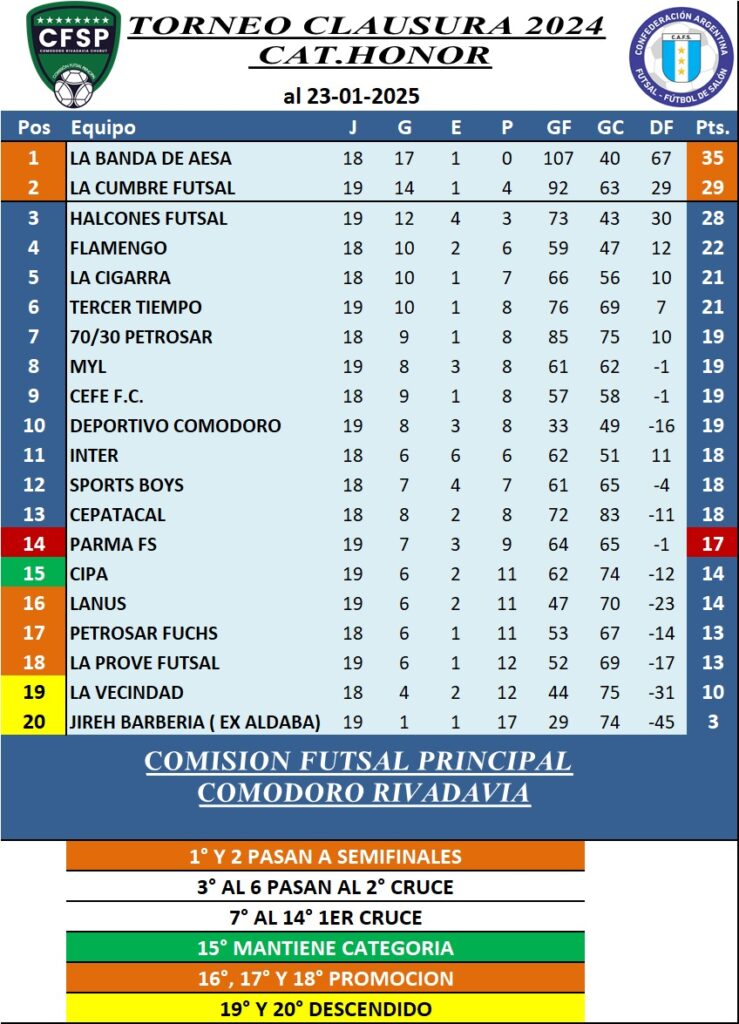 TABLA CATEGORÍA HONOR