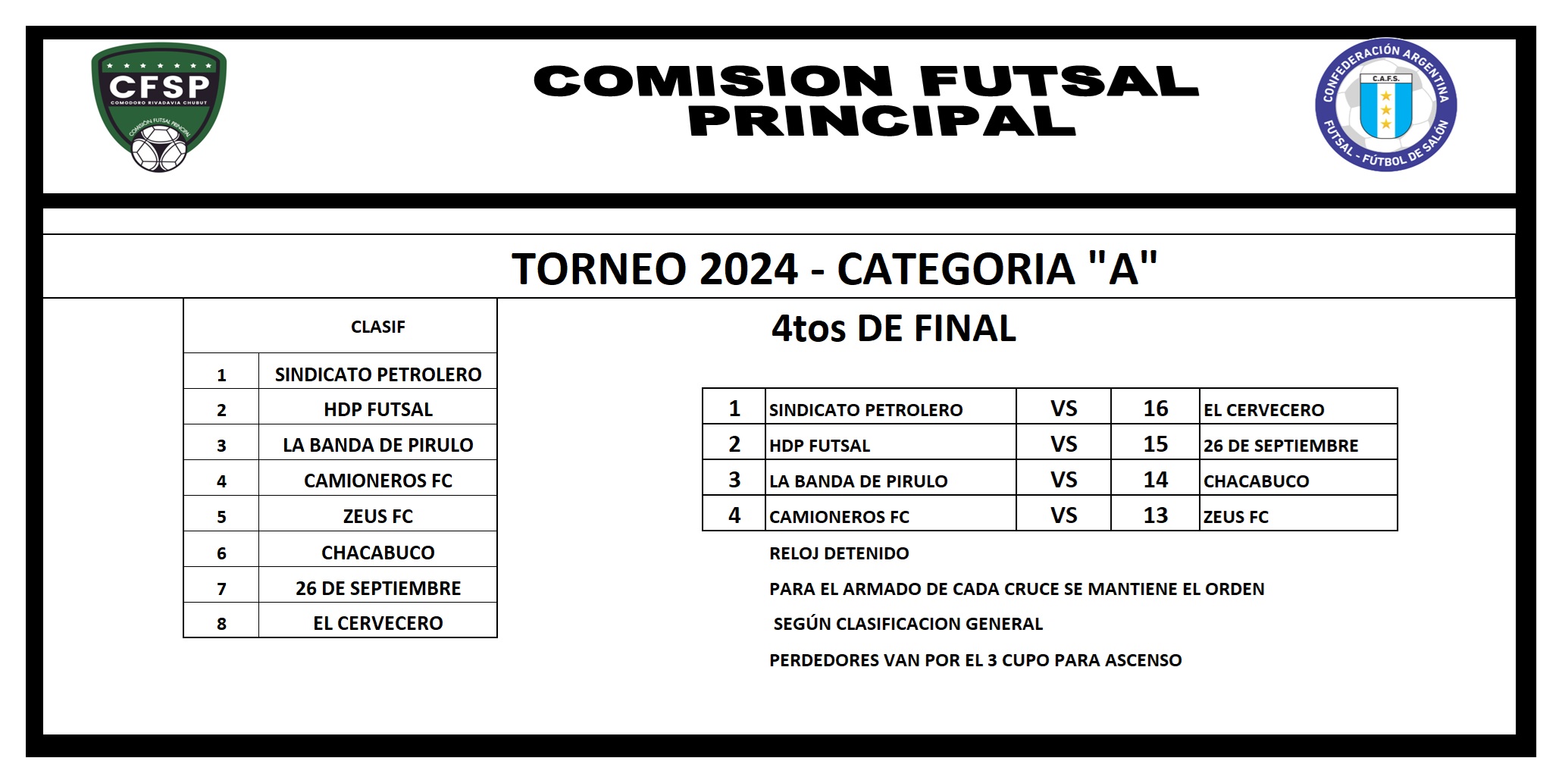 CATEGORÍA “A” – RESULTADOS OCTAVOS DE FINAL