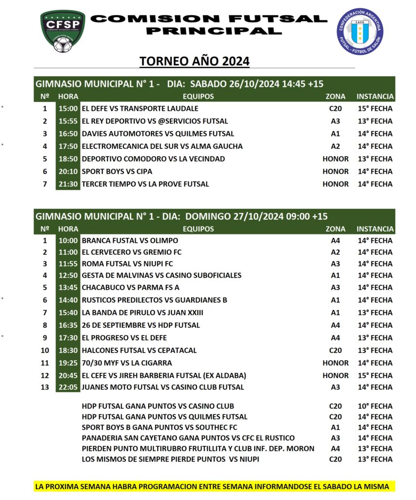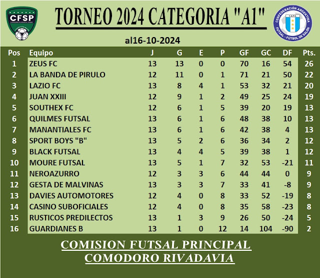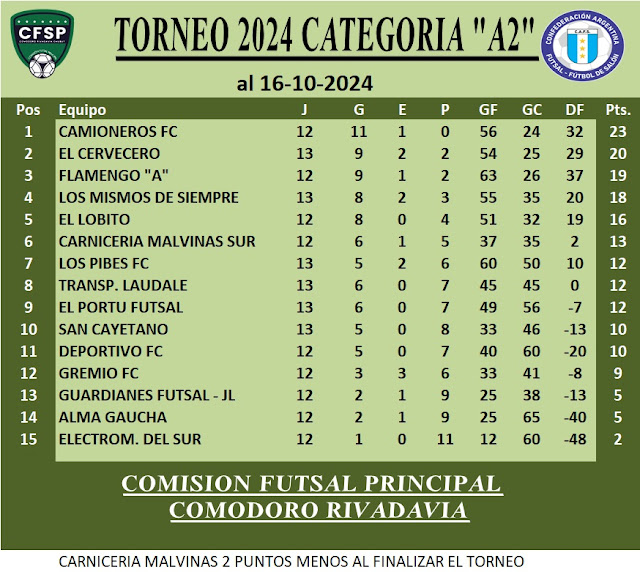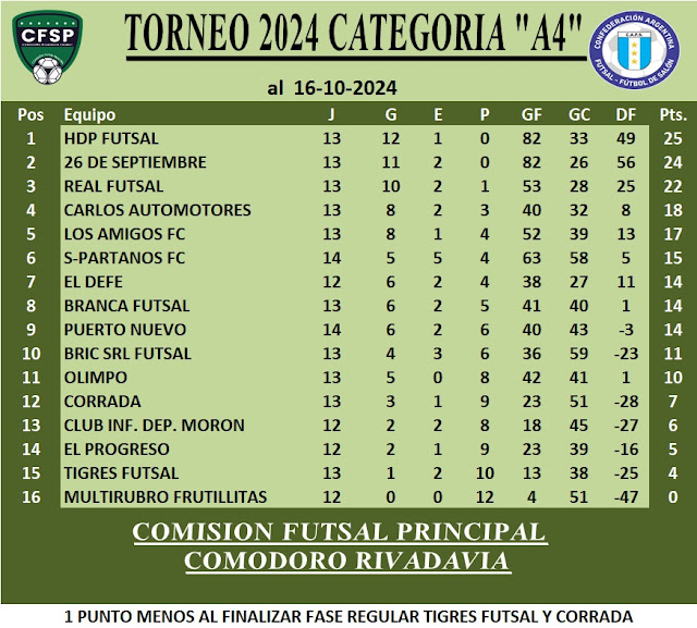 Además, recordamos las tablas de posiciones hasta la fecha 16 de octubre.
