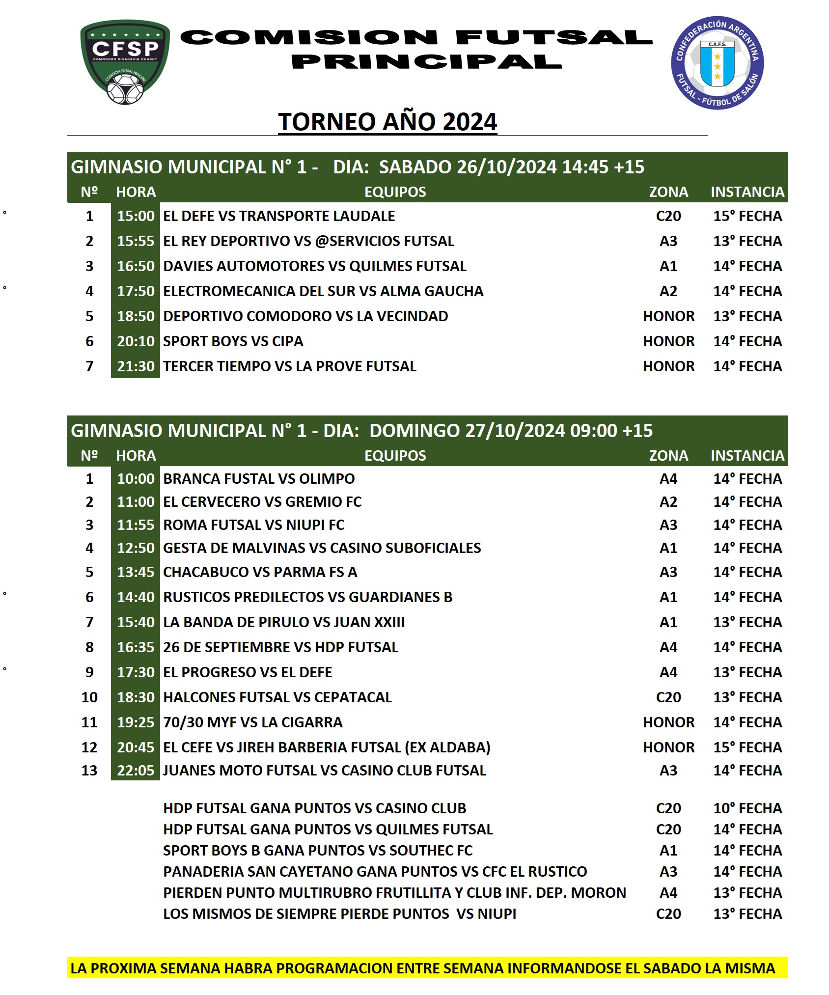 Este fin de semana el futsal tiene fixture confirmado para dar inicio a una nueva fecha del Futsal Comodorense en sus distintas categorías para este fin de semana.