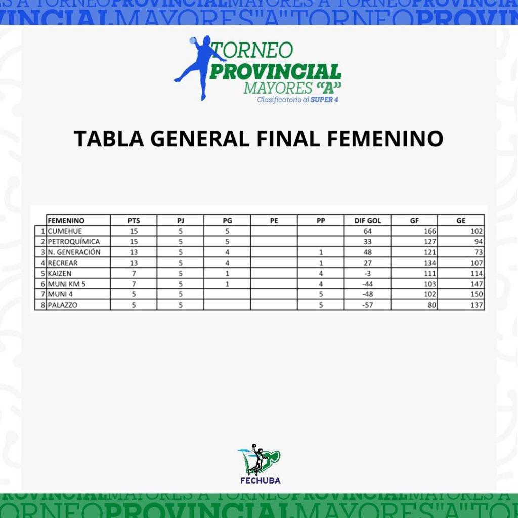 Así quedó la tabla general femenina con los equipos clasificados al Súper 4 que se jugará en noviembre en Comodoro