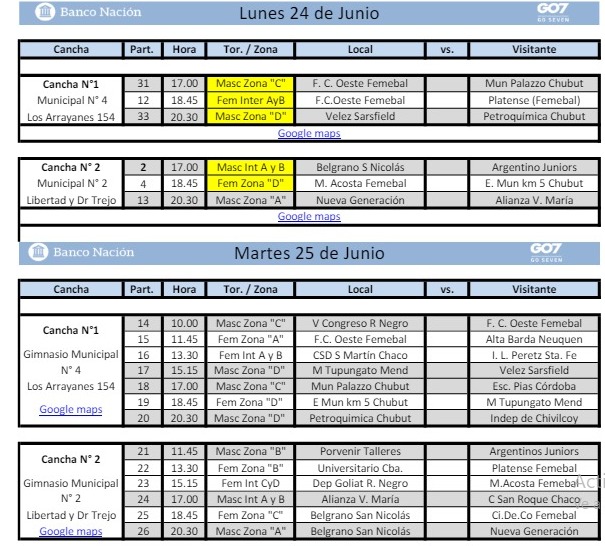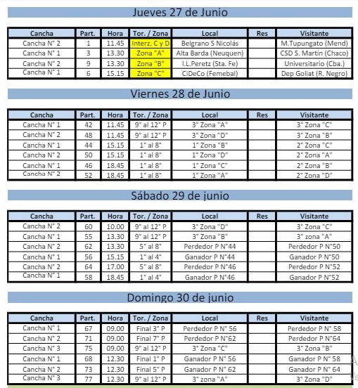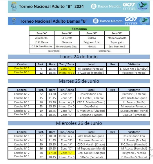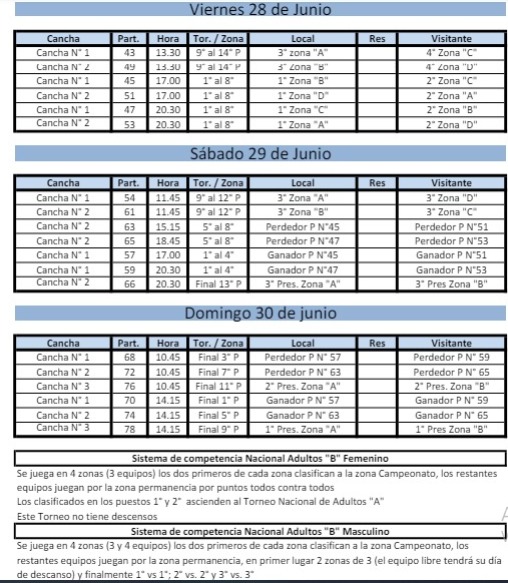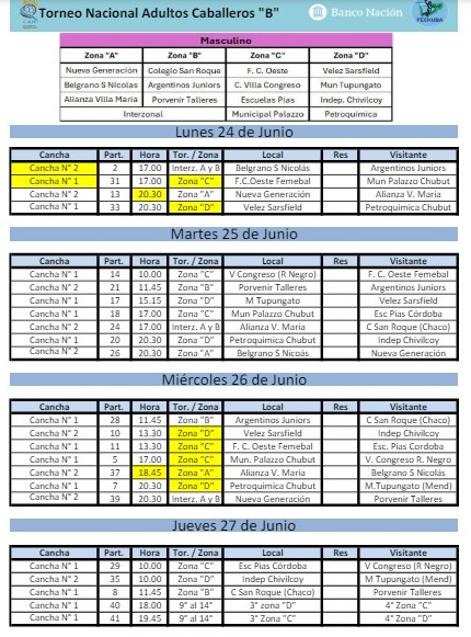 Debido a factores climáticos, hubo modificaciones en el fixture del Nacional de Clubes B que se llevará a cabo en Comodoro Rivadavia del 24 al 30 de junio.
