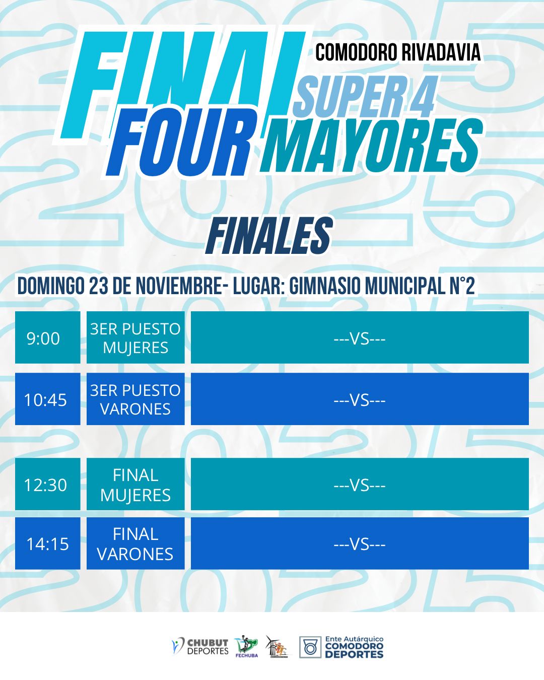 El domingo, los perdedores de los encuentros se enfrentan en la definición por el 3º y 4º puesto por la mañana, comenzando con las mujeres y luego los varones. Pasado el mediodía se jugarán las finales entre los ganadores del sábado, nuevamente arrancando con la rama femenina y cerrando con la masculina.