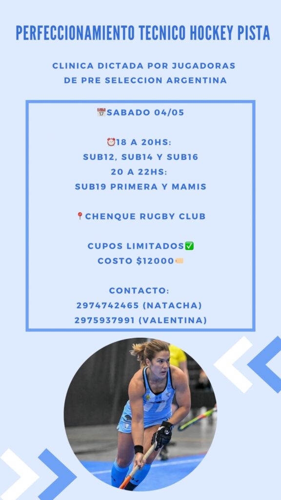 La clínica se realizará para categorías menores y mayores este sábado 4 de mayo Sub 12, Sub14 y Sub16: 18:00hs a 20:00hs y para categorías mayores Sub 19, Primero y Mamis: 20:00 a 22:00hs.