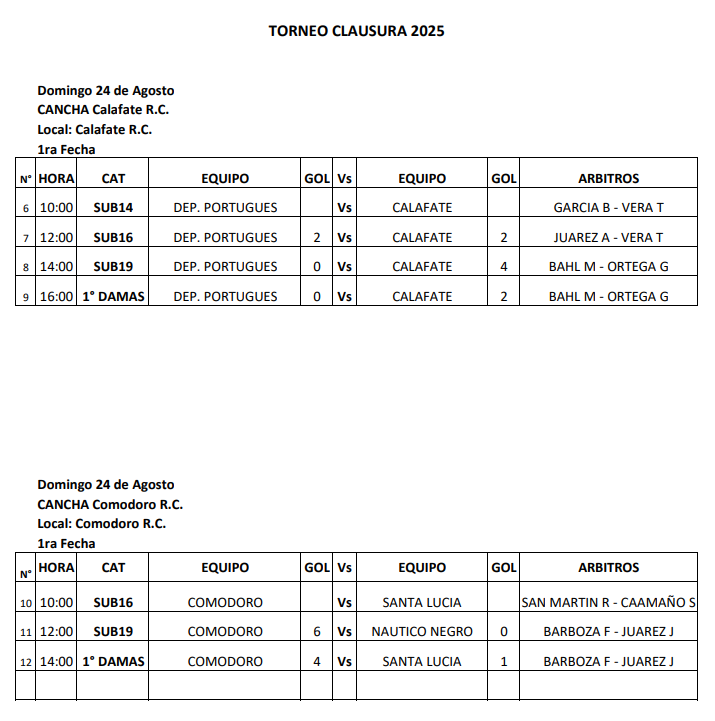 El domingo se jugó el resto de la fecha. En Calafate, el dueño de casa se enfrentó a Deportivo Portugués en tres categorías. Fue empate 2-2 en Sub 16 y victorias locales en Sub 19, 4-0, y Primera Damas, 2-0.