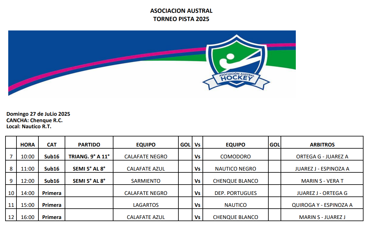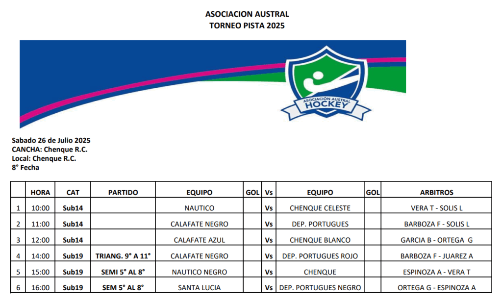 Este fin de semana tendrá lugar una nueva jornada del torneo Oficial de Hockey Pista en la cancha de Chenque RC. Dos días a pura acción verán a las distintas categorías ir cerrando el torneo.