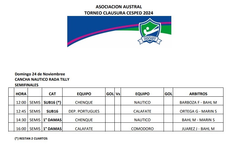Este domingo en Cancha de Náutico se definen los últimos finalistas y por otro lado desde el jueves 28 y hasta el domingo 01/12, Austral será sede del Campeonato Regional A y B de sub14 Césped.
