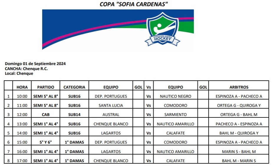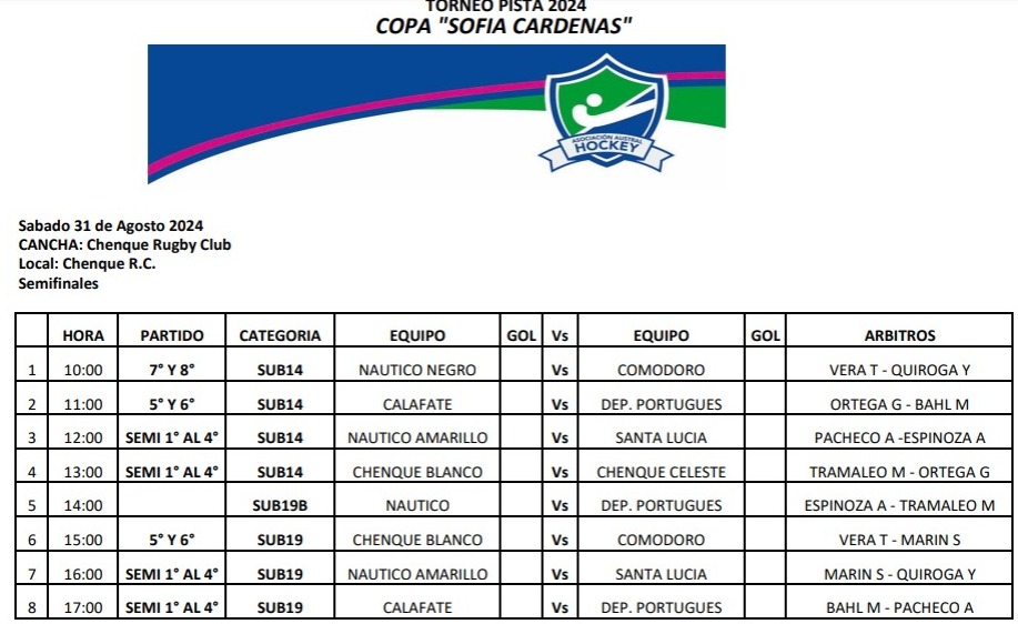 Este fin de semana sigue la acción del Torneo de Hockey Pista, donde el sábado y domingo se jugará en la cancha de Chenque Rugby Club. CRONOGRAMA: