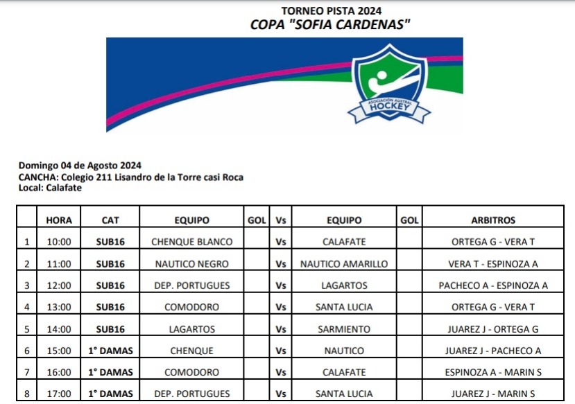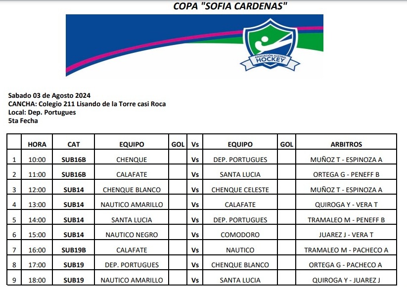 El Sabado 03 de Agosto se juega en el Colegio 211 Lisando de la Torre casi Roca, donde juega de local: Dep. Portugues. El domingo misma sede pero de local jugará Calafate.
