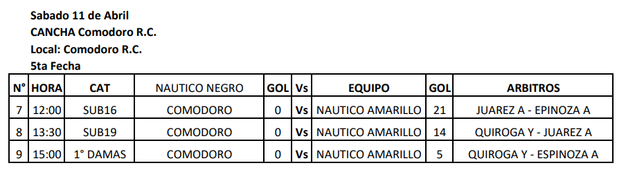 En Astra hubo triple victoria de Náutico Amarillo frente a Comodoro RC. Goleada 21-0 en Sub 16, 14-0 en Sub 19 y 5-0 en Primera Damas.