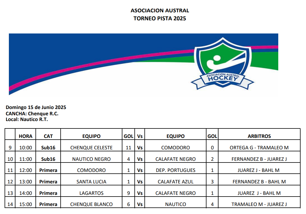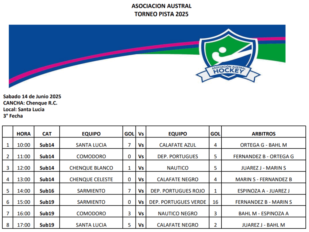 El sábado arrancó con la Sub 14. Santa Lucía ganó 7-4 a Calafate Azul, Deportivo Portugués venció a Comodoro RC 5-0, Náutico de Rada Tilly derrotó 5-1 a Chenque Blanco y Chenque Celeste cayó ante Calafate Negro por 4-0.