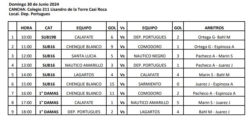 En la Primera de Damas, hubo victorias de Chenque Blanco, Náutico Rada Tilly y Lagartos de Pico Truncado. Chenque goleó 11-2 a Comodoro RC, Náutico se impuso por 5-1 ante Calafate RC, mientras que Lagartos superó por 4-2 a Deportivo Portugués.
