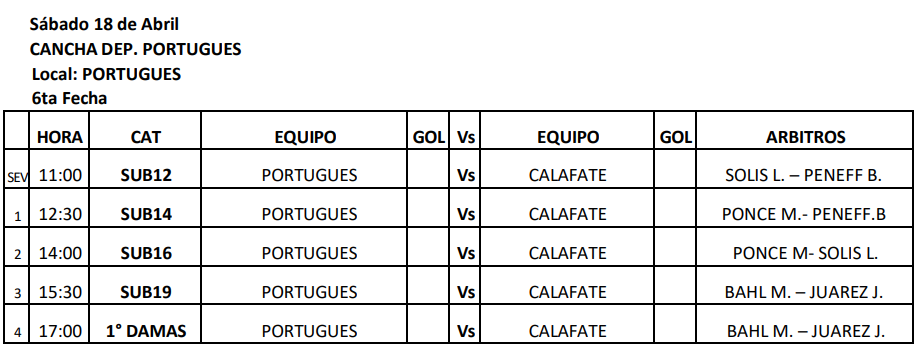 El sábado, en barrio industrial, Deportivo Portugués y Calafate RC se miden en todas las categorías. El Lusitano y Cala se enfrentarán en Sub 12, Sub 14, Sub 16, Sub 19 y Primera Damas.