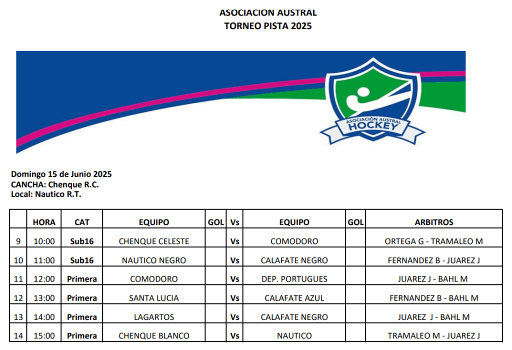El sábado abrirá con la Sub 14. Santa Lucía se enfrenta a Calafate Azul, Comodoro RC choca con Deportivo Portugués, Chenque Blanco recibe a Náutico de Rada Tilly y Chenque Celeste juega ante Calafate Negro.