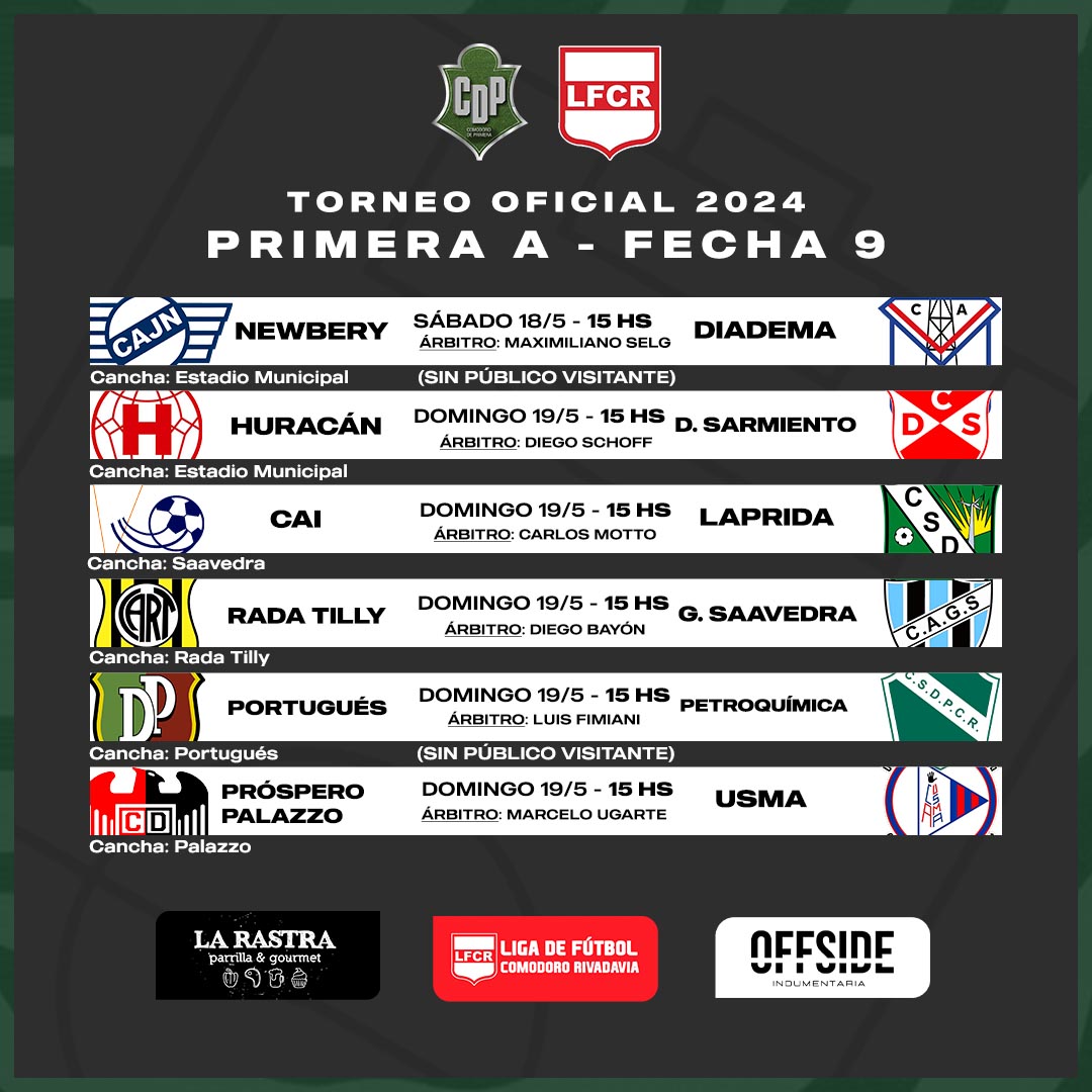 El domingo, en el mismo horario, se disputa el resto de los partidos, Huracán recibe a Deportivo Sarmiento en el Estadio Municipal. El juez del encuentro será Diego Schoff con Gabriel Jarpa y Melisa Carrizo.