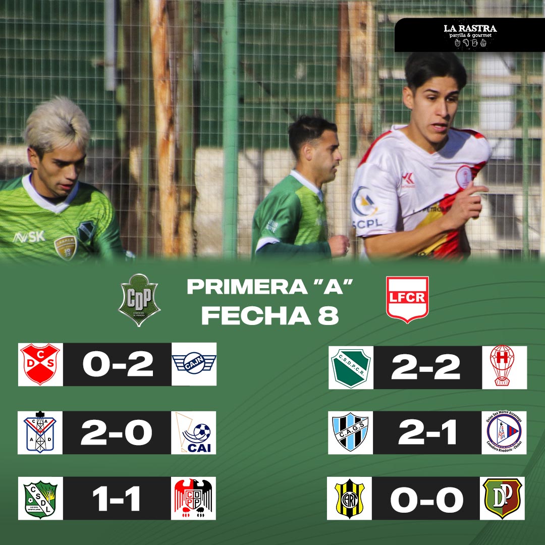Se completó la octava fecha de la máxima categoría de nuestro fútbol comodorense, el Aeronauta había jugado el único partido el fin de semana pasado y recién este domingo se completaron todos los resultados, Laprida no pudo contra Palazzo y le cedió el liderazgo total a Jorge Newbery que es puntero con 20 puntos mientras que el Verde quedó como escolta con 18.