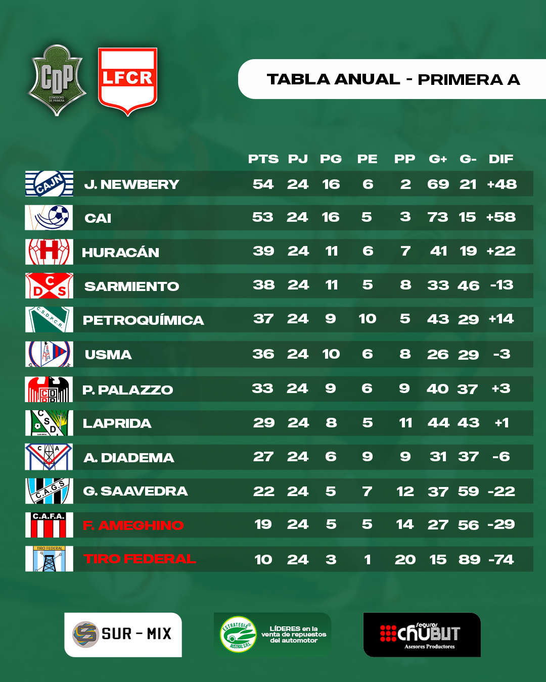 La tabla anual, por su parte, quedó así: