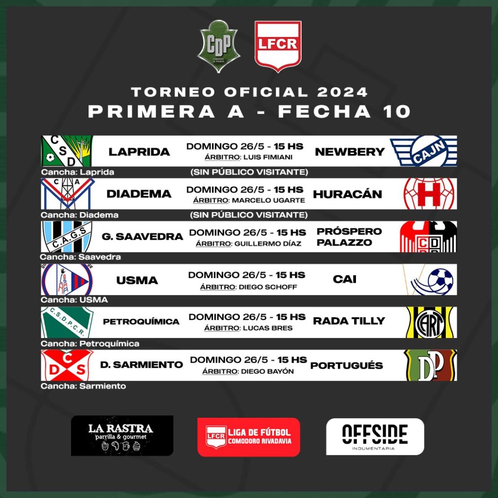 Y finalmente, en la Ciudad de los Lagos, el Deportivo Sarmiento intentará levantar cabeza para recibir al Deportivo Portugués. El árbitro designado es Diego Bayón, que será acompañado por Armando Subelza y Luis Marcial como jueces de línea.