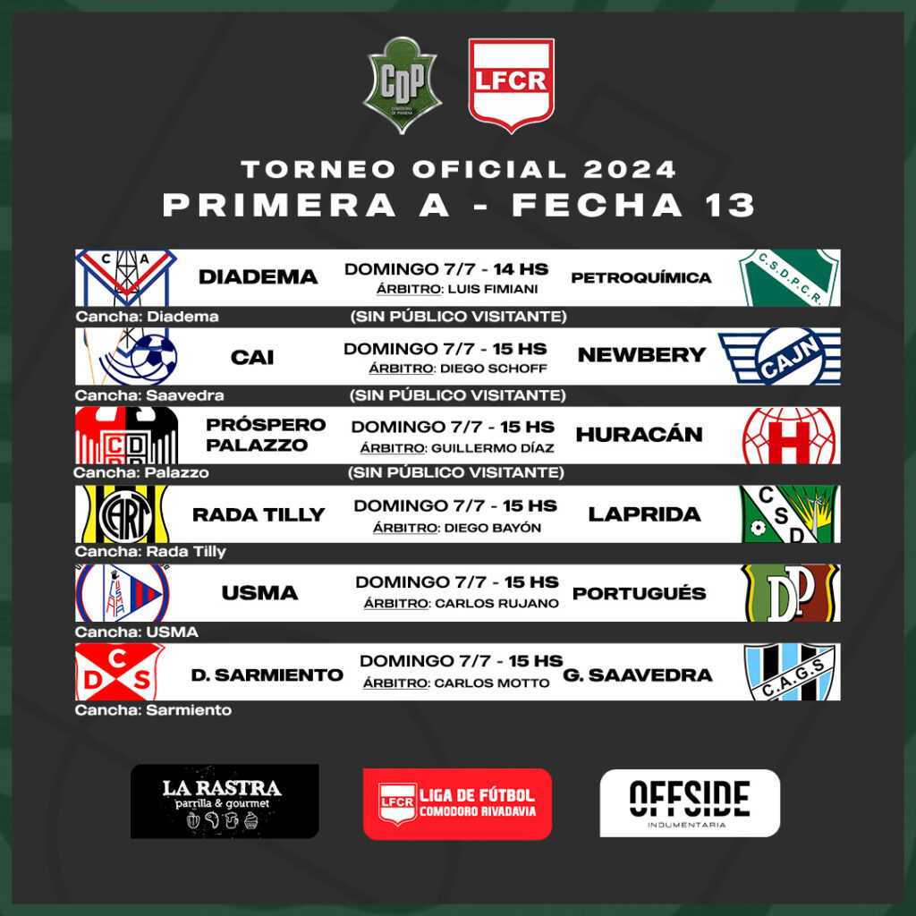 Por último, en la Ciudad de los Lagos, el Deportivo Sarmiento se enfrenta con General Saavedra. Carlos Motto será el juez del partido, junto con Daniel Sosa y Yamila Sarmiento.