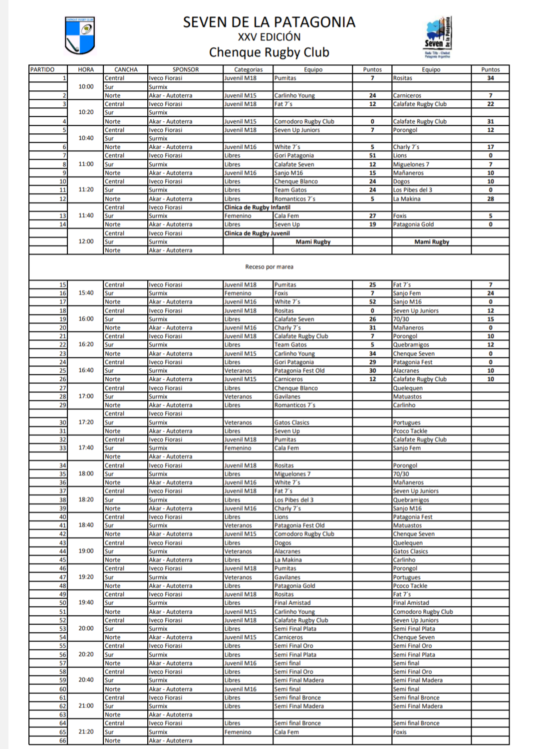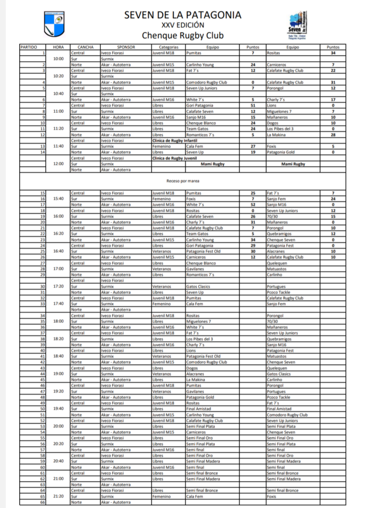 Con la participación de más de 50 equipos, este sábado y domingo se jugará en la Bajada 12 de Rada Tilly, la 25ª edición del Seven de la Patagonia, tradicional torneo de rugby veraniego que se juega en esta época del año y que organiza Chenque RC.