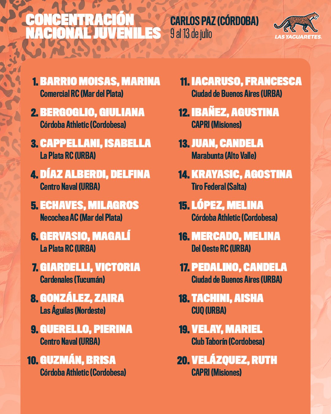 Entre el 9 y el 13 de julio, la selección nacional juvenil femenina hará una puesta a punto de cara a los Juegos Panamericanos Junior 2025, a disputarse en Asunción, Paraguay, en agosto de este año. El 12 y 13, Las Yaguaretés presentarán dos equipos y competirán ante los seleccionados de Brasil, Paraguay, Perú y un seleccionado de la provincia anfitriona, Córdoba.